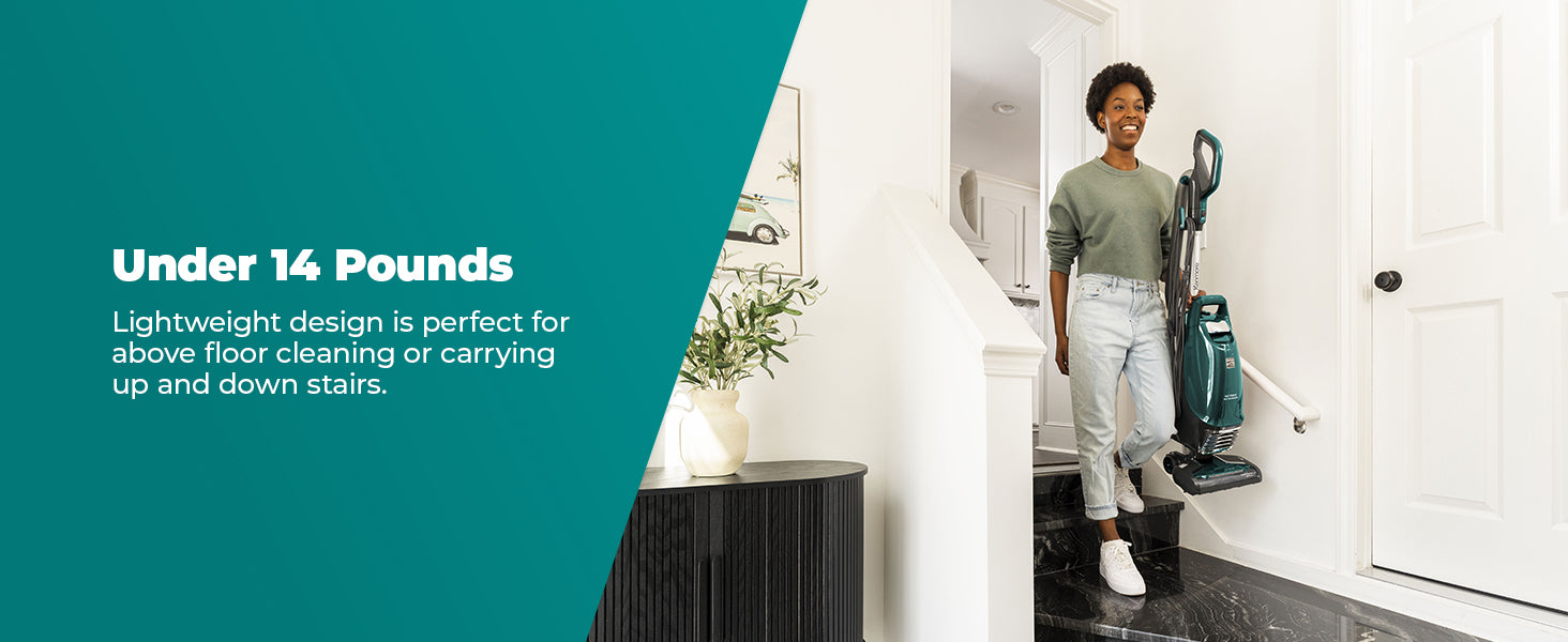 At under 14lbs, this full-size upright leaves dirt nowhere to hide with swivel steering and LED headlights.
