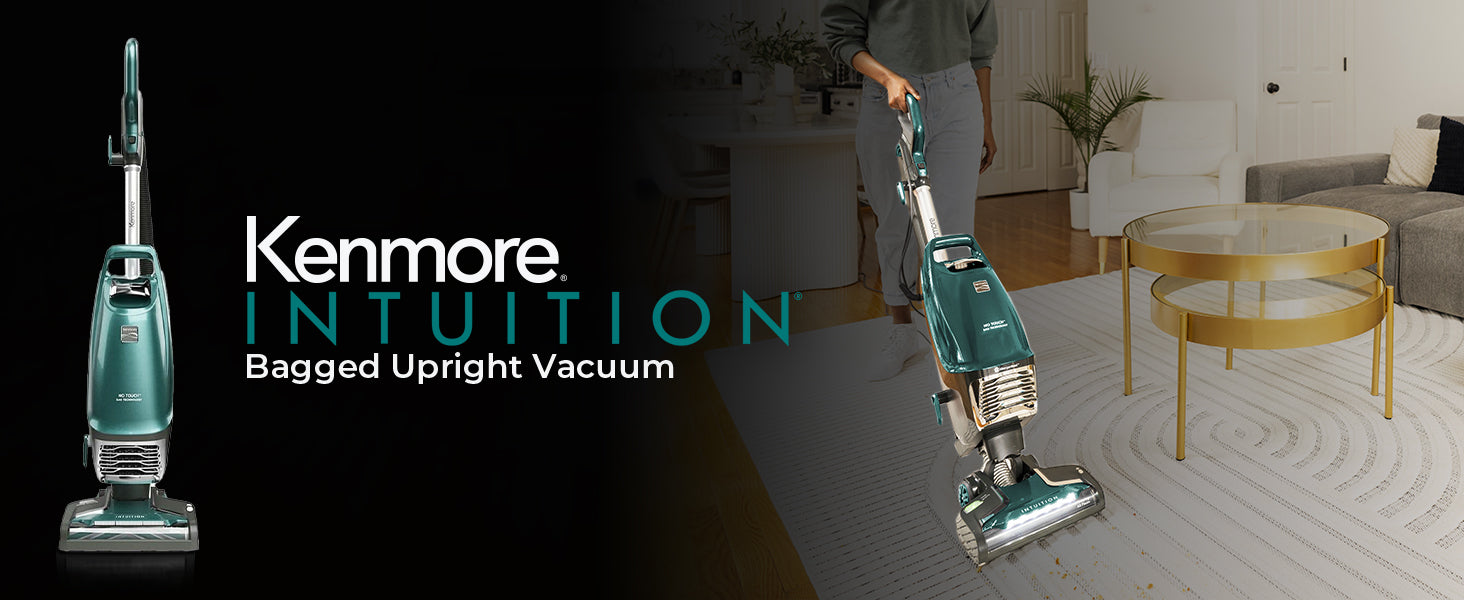 The Kenmore Intuition has reinvented bagged vacuuming. A revolutionary, lightweight and fully featured upright with the Kenmore power and performance you trust. Featuring patented and exclusive innovations including Lift-Up®, No Touch Bag Technology, AllergenSeal System, Bag Fill Indication, PowerFlow Bag Chamber, and more.