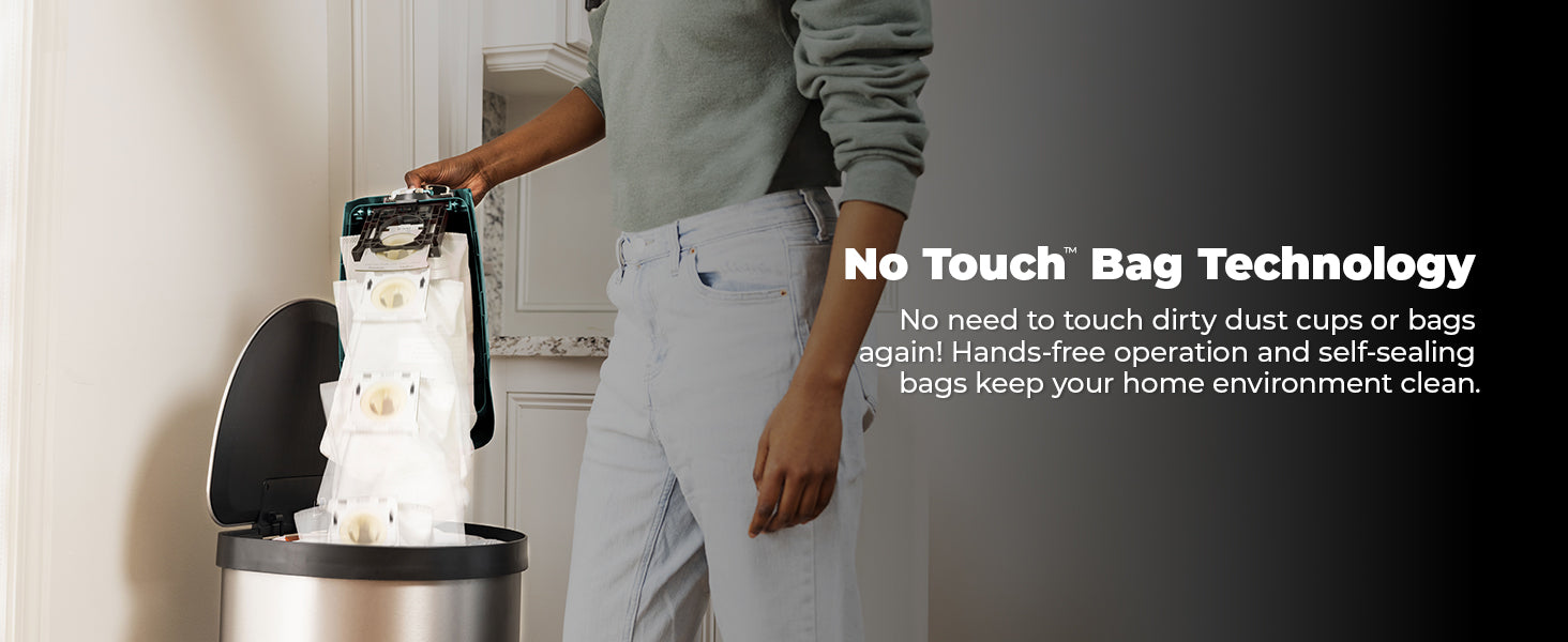 Eliminate the annoyingly dirty process of emptying and cleaning a full dust cup with the press of a single button to get rid of your dirt and debris. Hands free operation and self-sealing bags keep your home environment clean – no touch and no messy cleanup!